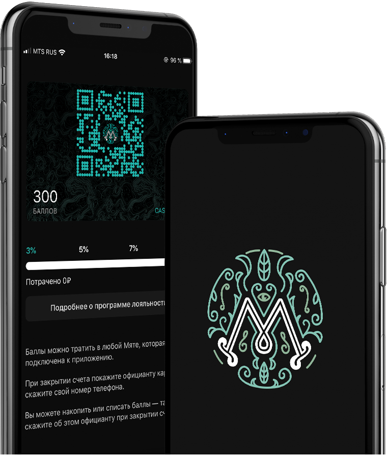Скачайте приложение Мята Loyalty и пользуйтесь программой лояльности. Копите баллы и оплачивайте ими до 25% от суммы чека. Получайте привилегии